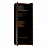 Двухдверный распашной шкаф легко открывается за ручку-петлю из микрофибры, которая устанавливается на одном зеркальном фасаде, другой - открывается за рамку. Шкаф комплектуется выдвижной штангой и двумя нишами сверху и снизу. Корпус шкафа выполнен в декоре Дуб Табачный. Регулируемые опоры компенсируют неровности пола.