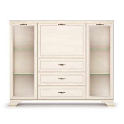 Если вам нужно купить недорогой низкий шкаф в гостиную в классическом стиле обратите внимание на данную модель. В его наполнении вам доступно 2 отделения со стеклянными дверками для хранения посуды, книг и различных сувениров. На ваш выбор вы можете докупить четыре стеклополки и модель заиграет новыми красками.