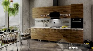 Фактурный древесный декор фасадов кухни "Крафт" отсылает к природной естественности и грации, а черные элементы создают яркие акценты, привлекающие к себе внимание. Четкие геометрические линии, массивные ручки под металл и фасады под дерево помогают отступить от стандартных шаблонов оформления кухонного пространства, обустроив у Вас дома воплощение изящества и элегантности!
