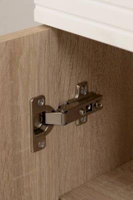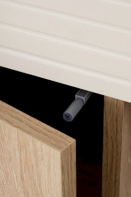 Для плавности хода створок петли оснащены доводчиками. В конструкции пенала имеются ящики, оснащенные шариковыми направляющими полного выдвижения. Современная система «push-to-open» позволяет открывать створки и ящики нажатием руки.