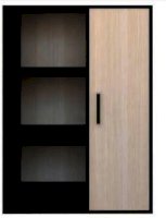 Стандартная комплектация – слева открытые полки. Справа – шкафчик, закрытый створкой.