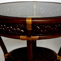 Изумительный террасный комплект мебели Secret De Maison из коллекции ANDREA, состоящий из столика и двух кресел, будет прекрасно смотреться в загородном доме, на дачной веранде, отлично подойдёт для отдыха на приусадебном участке. Уникальные плетеные узоры из натурального ротанга, выполненные вручную с использованием нескольких видов традиционного индонезийского плетения, добавят ноты изысканности и индивидуальности в ваш интерьер. Небольшой столик со столешницей из закаленного стекла, дополненный миниатюрной нижней полочкой, практичен и элегантен. Стекло обладает повышенной прочностью, долговечностью, способно многие годы не утрачивать своей первоначальной привлекательности. Два эргономичных кресла с мягкими подушками позволят удобно расположиться для комфортного отдыха. Тканевая обивка подушек проста в уходе, прослужит вам долгие годы, сохраняя свой первоначальный вид. Эта прочная и практичная мебель покрыта прозрачным матовым лаком, устойчивым к УФ-излучению, способна выдержать большие нагрузки, устойчива к повышенной влажности и долгие годы сохранит свой презентабельный вид. Комплект идеально сочетается с мебелью из коллекции ANDREA, поставляется в собранном виде.