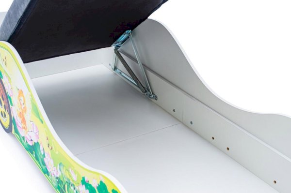 Каркас кровати выполнен из экологичного ЛДСП класса эмиссии Е1, соответствует всем стандартам качества и не имеет химического запаха. Все края кровати покрыты кромкой ПВХ 1 мм и безопасны для малышей.