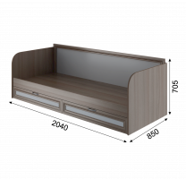 • Кровать имеет 2 выдвижных ящика.