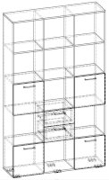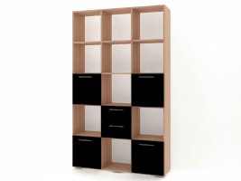 Применение задней стенки из ЛДСП (в ячейках с ящиками и фасадами) позволяет использовать данный стеллаж для зонирования пространства (чтобы предотвратить опрокидывание, необходимо обеспечить крепление стеллажа к стене).