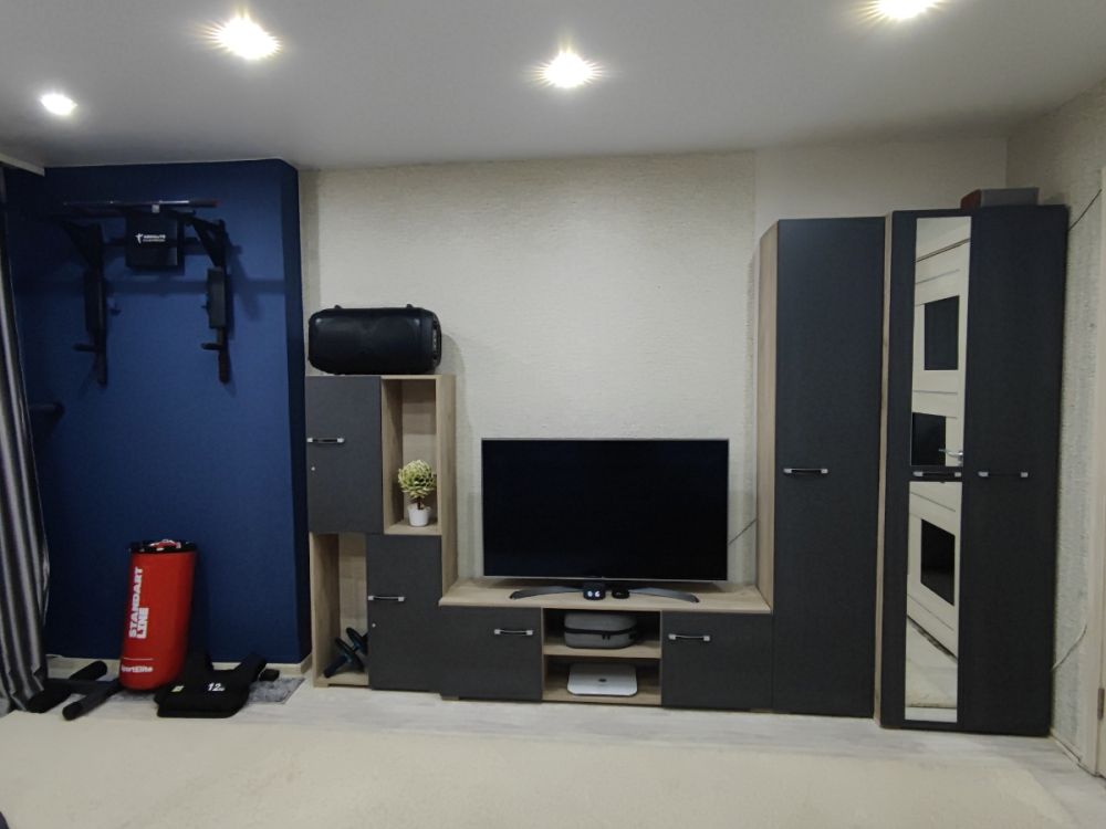 Недорогая стенка,которая идеально вписалась по длине.