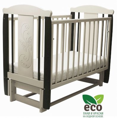 Кроватка "Соня 05" имеет механизм качания продольный маятник. Механизм качания фиксируется. Возможен вариант кровати с ящиком.