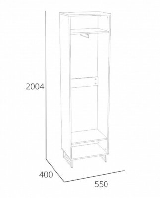 Одностворчатый шкаф из коллекции ФОЛК легко впишется в интерьер прихожей в стиле Лофт, придав ей современный и монументальный вид. Черная лаконичная ручка и металлические опоры подчеркивают оригинальный дизайн мебели, а черная кромка шкафа эффектно выделяет фасад изделия.