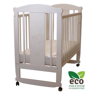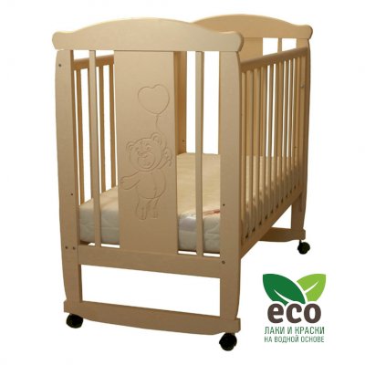 Кроватка "Соня 02" имеет механизм качания колесо-качалка. Колеса оснащены стопорами.