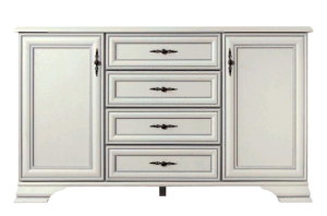 2 распашные двери и 4 выдвижных ящика на металлических роликовых направляющих, за каждой распашной дверью 2 ниши.
