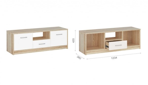 Тумба для телевизора предназначена для размещения TV и медиатехники. На столешнице можно разместить панель с диагональю до 55 дюймов и предметы декора. В выдвижном ящике удобно хранить всякую мелочь, а в отделениях с дверцами – провода, пульты, видеоаксессуары. Идеально компонуется со всеми модулями системы Стелс. Мебель выполнена из высококачественных экологичных материалов.