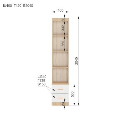 ШхГхВ 400 x 416 x 2040 мм