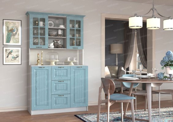 Кухня Кантри изговаливается также в цветах серый/роялвуд сирень; серый/роялвуд голубой; серый/роялвуд бирюза. Модули в этих цветовых решениях вы сможете найти в нашем интернет-магазине.