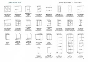 Глубина верхних шкафов указана без учета фасада, высота столов указана без учета столешницы