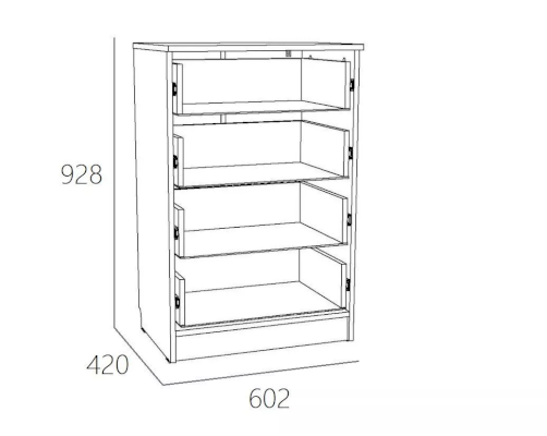 Комод Оливия НМ 040.38 X имеет компактные габариты и не займет много места в детской или спальне. Четыре вместительных ящика позволят рационально разместить внутри модуля постельные принадлежности и белье.