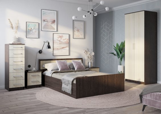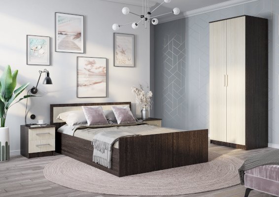 Кровать Фиеста выполнена из высококачественной ЛДСП в цвете венге. Изголовье имеет вставку светлого цвета лоредо. У изделия отсутствуют ножки, это избавит вас от скопления пыли под основанием. Кровать Фиеста – отличный выбор для интерьера любого стиля.