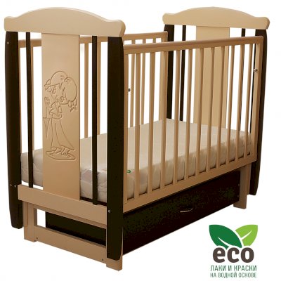 Кроватка декорирована фрезерным рисунком "Девочка". Уникальные фрезерные рисунки размером от 50 см на обеих спинках.