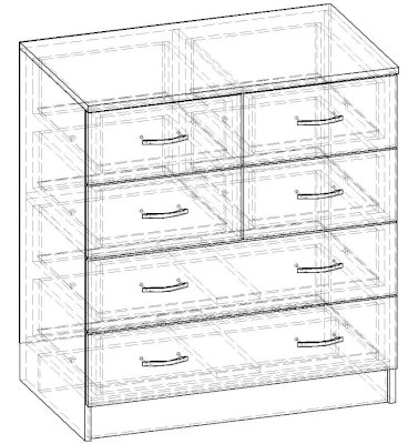 • Корпус, полки и фасады изготовлены из ЛДСП 16 мм с кромкой ПВХ 0,4 мм.