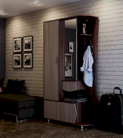 Прихожая «Элен» подходит для небольших помещений. Она компактна, но при этом весьма функциональна. В платяном шкафу и на открытой вешалке есть место для головных уборов и одежды, на полочках удобно хранить сумки и зонтики. Очень важная деталь — большое зеркало, в которое можно смотреться, прихорашиваясь перед выходом в свет.