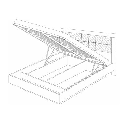 • кровать оснащена подъёмным основанием и вместительным бельевым ящиком, в котором можно разместить большое количество вещей или постельные принадлежности. Подъем основания обеспечивает надежный газлифт. Конструкция кровати устроена таким образом, что бельевой ящик углублен в пространство под кроватью, что создает эффект парения кровати;