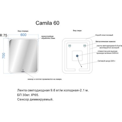 Светодиодное зеркало Camila (Veneciana) - за 15 564 руб. в Мытищах. Купите на сайте mytischi.onlinemarketmebeli.ru или по телефону 8(800)505-30-63 уже сегодня! Уточнить наличие, комплектацию, актуальную цену можно бесплатно у менеджера ежедневно. Закажите Светодиодное зеркало Camila (Veneciana) до конца акции! Доступна покупка в кредит, рассрочку. Доставим со склада или на заказ.